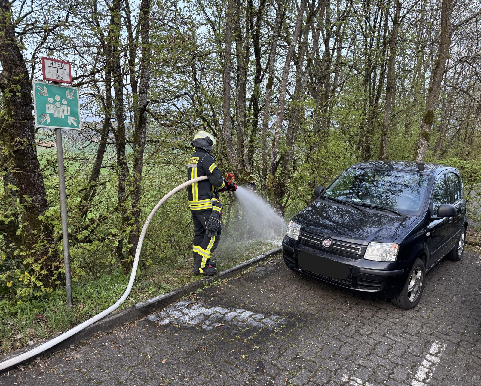 Dank des schnellen und beherzten Eingreifens des Hotelangestellten – der selbst aktives Mitglied der Feuerwehr ist – konnte ein Übergreifen der Flammen auf ein in unmittelbarer Nähe geparktes Fahrzeug verhindert werden.